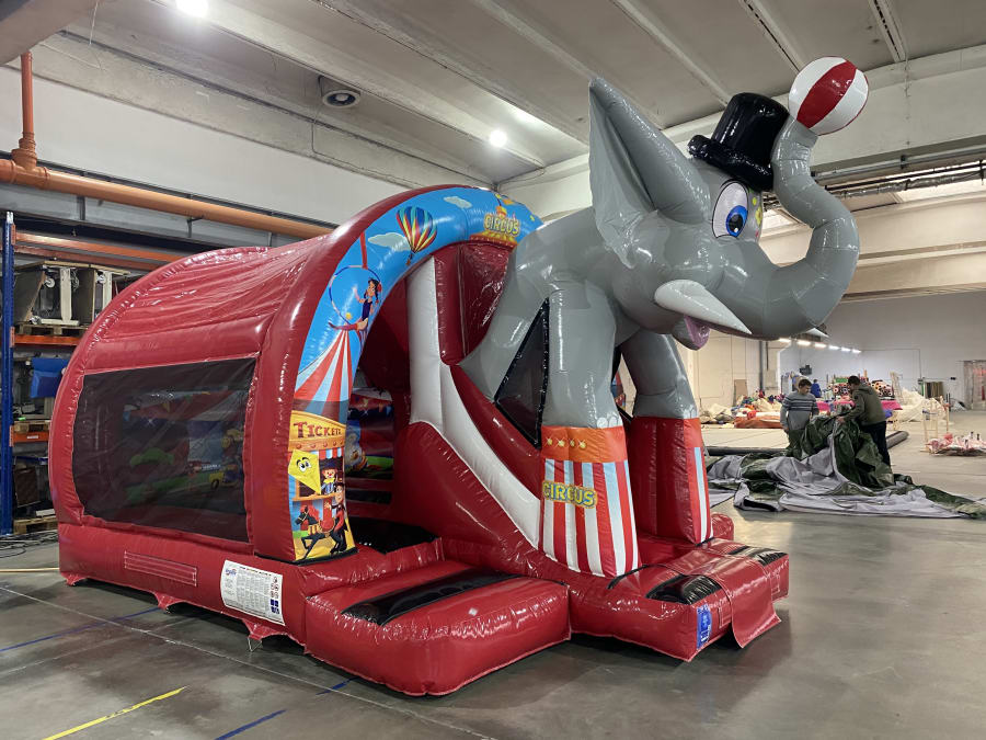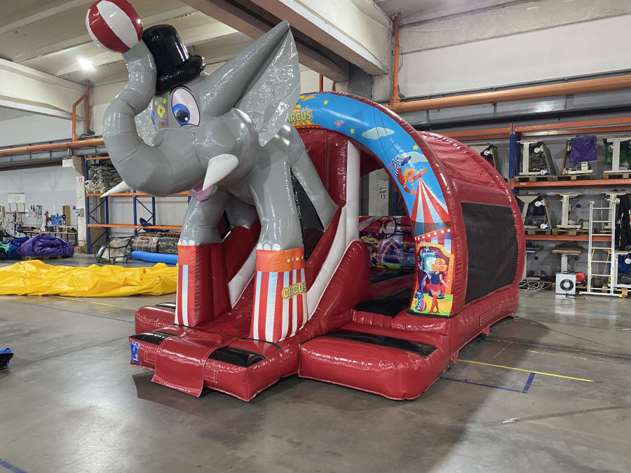 * Fully decorated with 3D animals, circus artwork and an Elephant Head slide exit